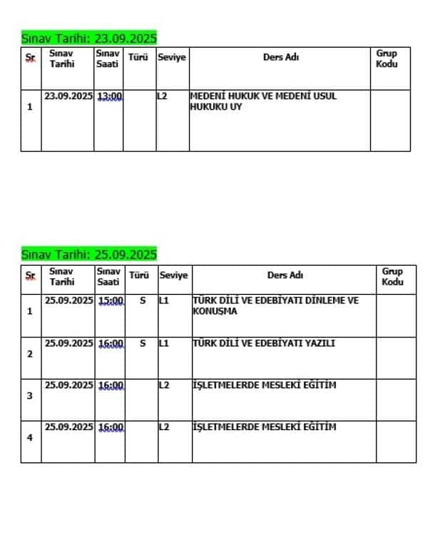 12. sınıftan mezun ancak 1 tane dersten sorumlu olan öğrenciler için tek ders sınavı yapılacaktır. 12. sınıf sorumluluk sınavı listesi ve sınav tarihleri ektedir.